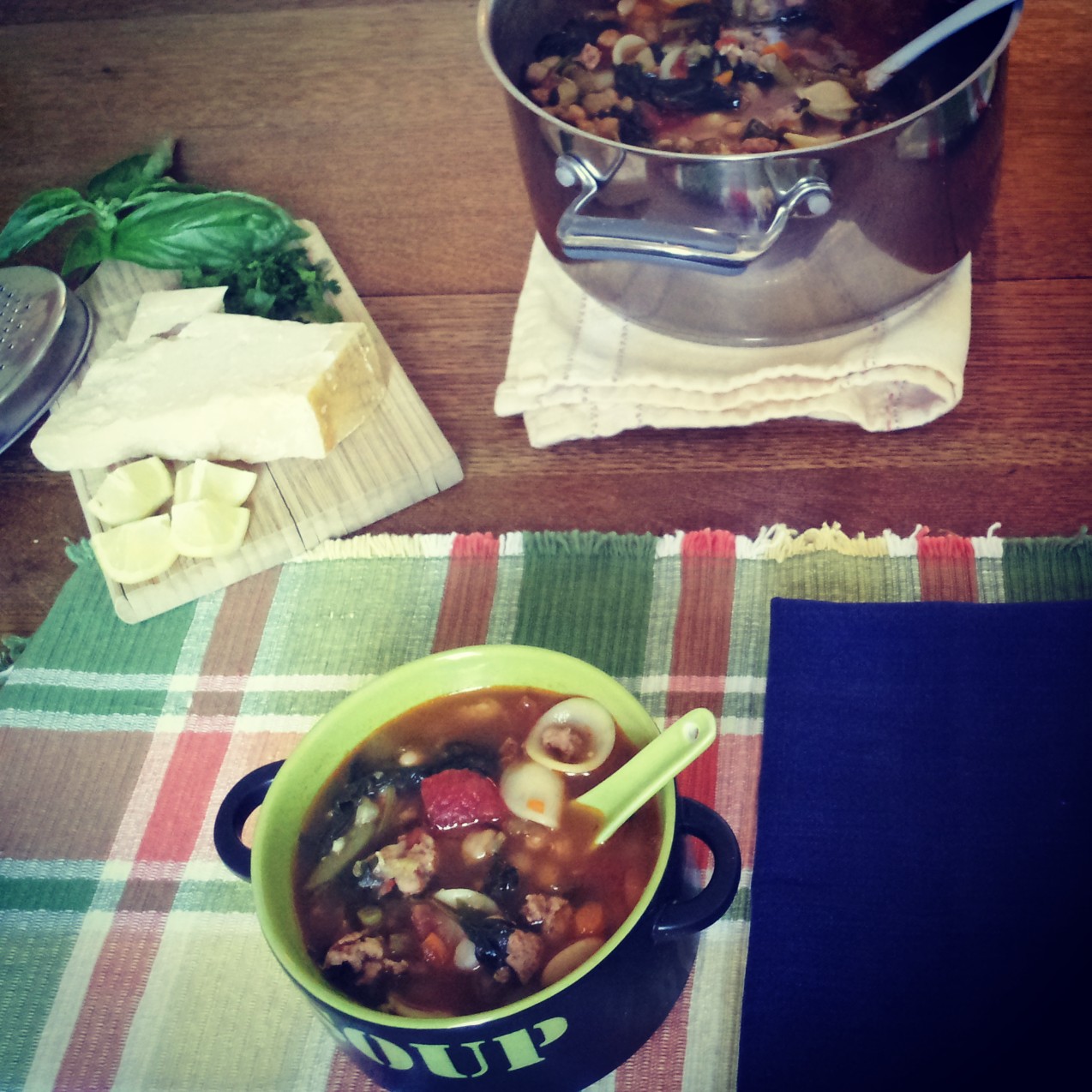 This soup feeds a crowd, so I suggest making it when you have a hungry group coming over for dinner. If your family is like mine, make it any night of the week (always seems to be a hungry clan waiting around the stove for something warm and hearty). Serve it along side sandwiches, or with a nice salad and a loaf of bread.