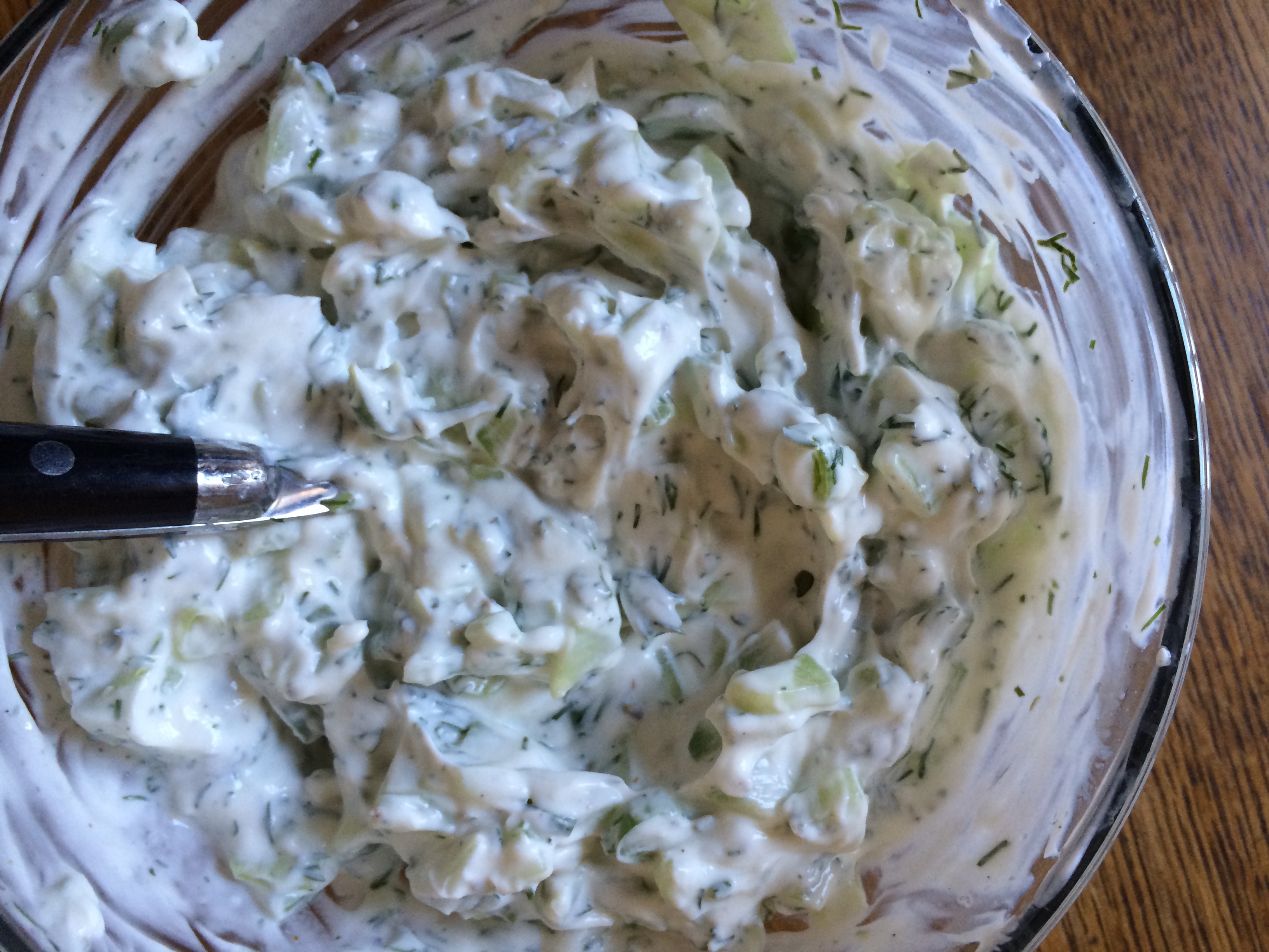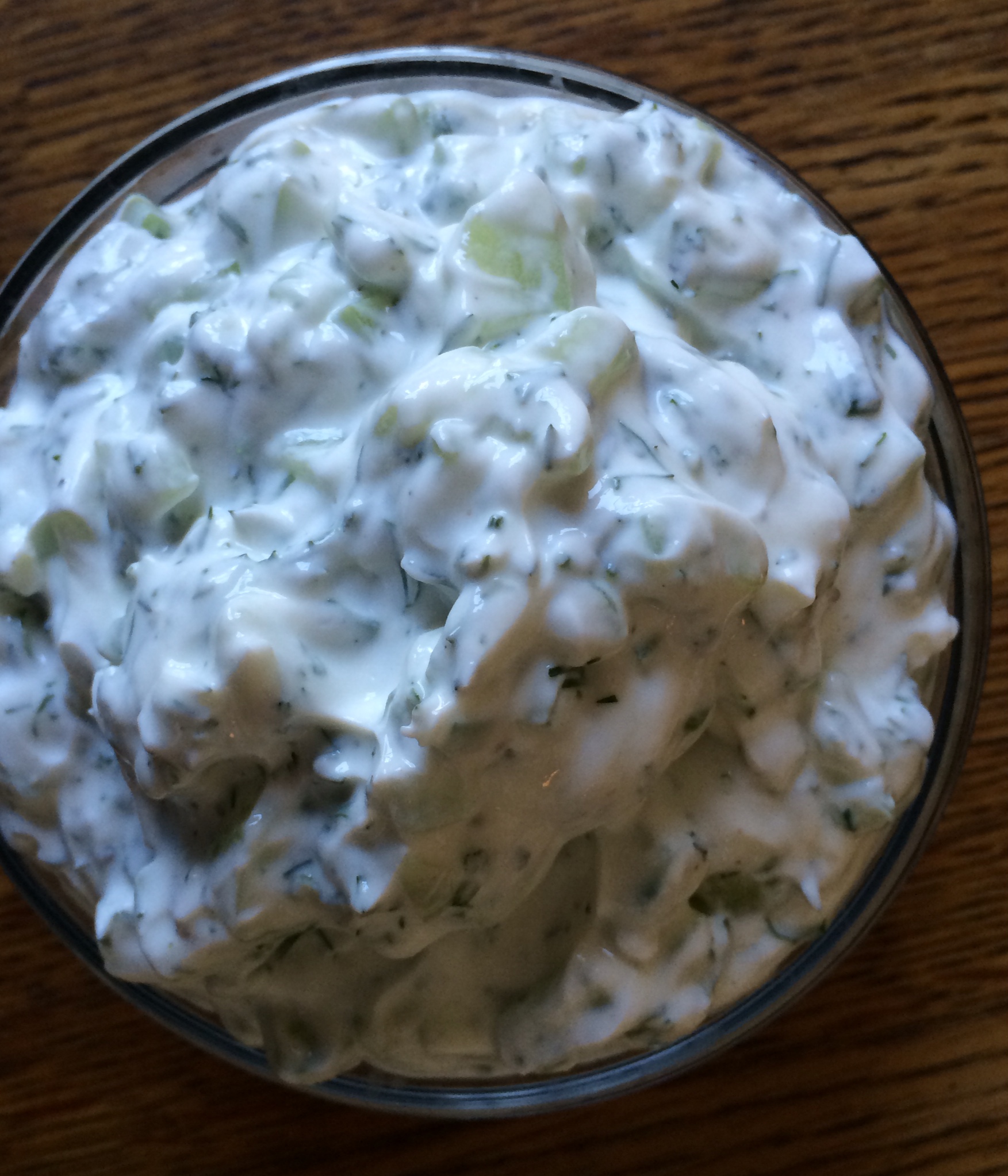 Tzatziki sauce is a beautiful combination of strained Greek yogurt, cucumber, garlic, dill, spring onion, lemon juice, salt, and pepper. It is traditionally served alongside grilled meats, and makes a wonderful addition to pita and hummus, or a crudites platter. It is cool, crisp, tangy, and refreshing.