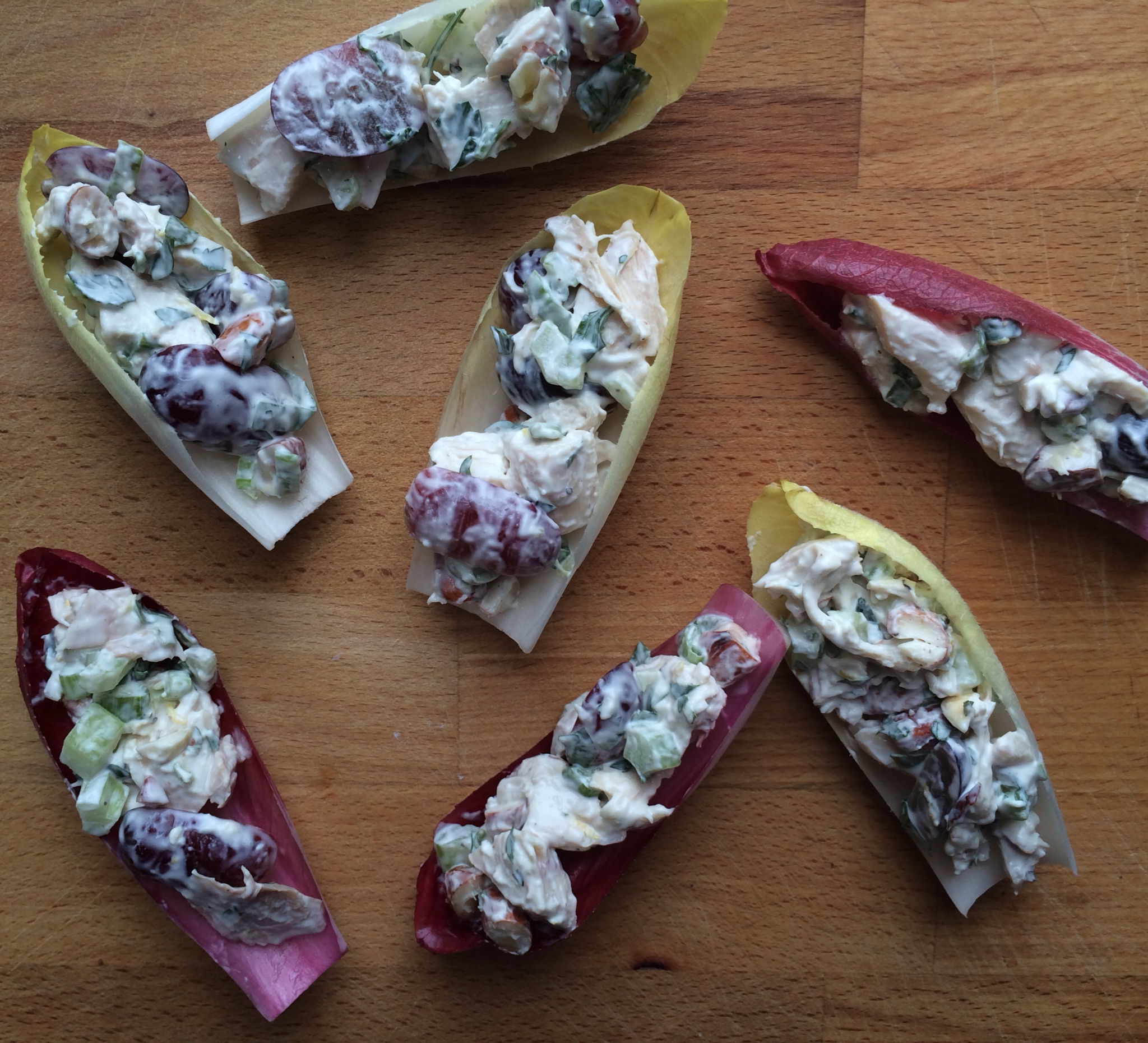 Thank you California Endive Farms for the beautiful shipment of endive! The slightly bitter flavor and crunchy texture of the endive leaves play very well with this chicken salad recipe. Absolutely delicious!
