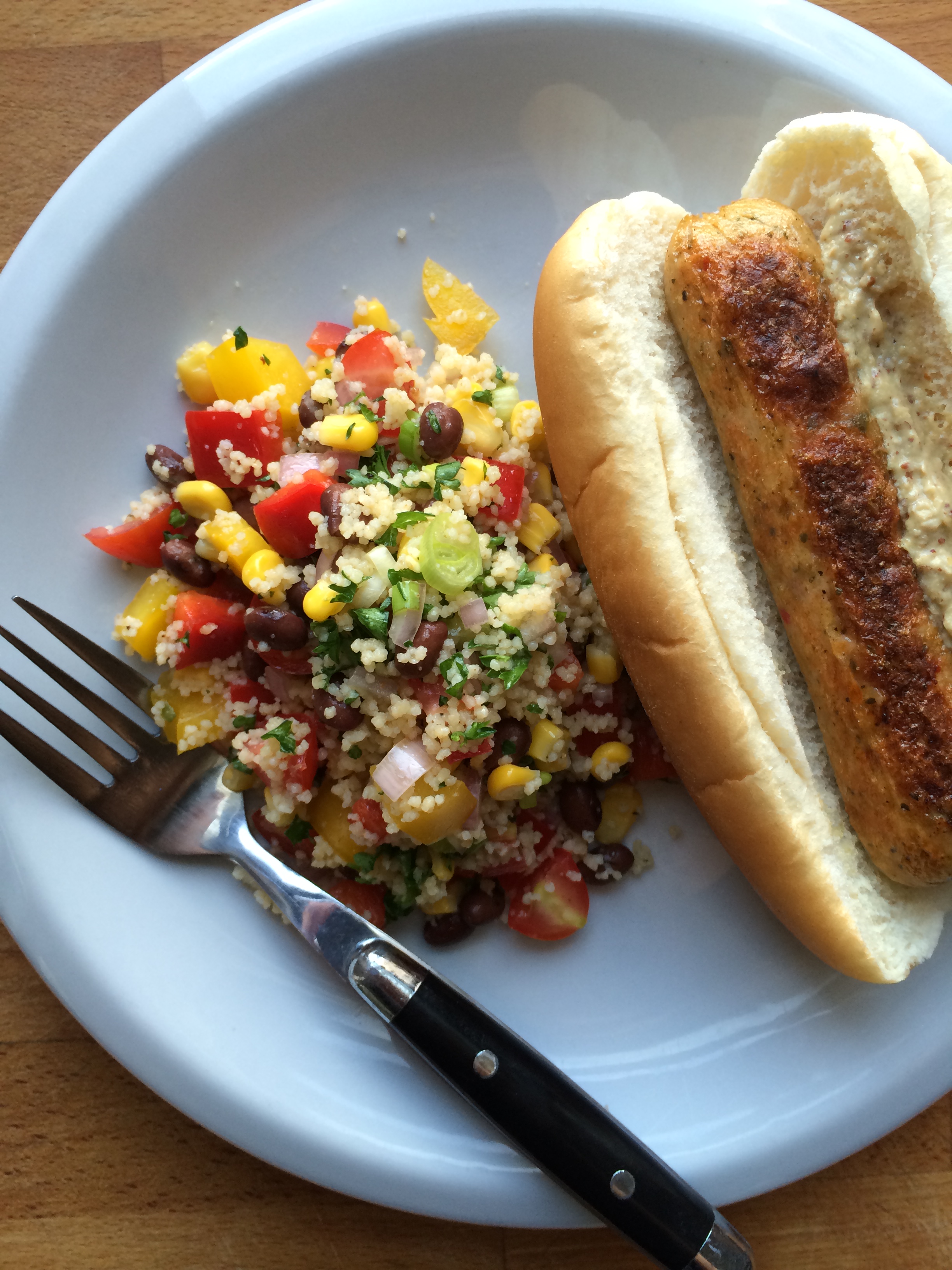 - 1 1/2 cups dry couscous, cooked according to package directions and cooled
