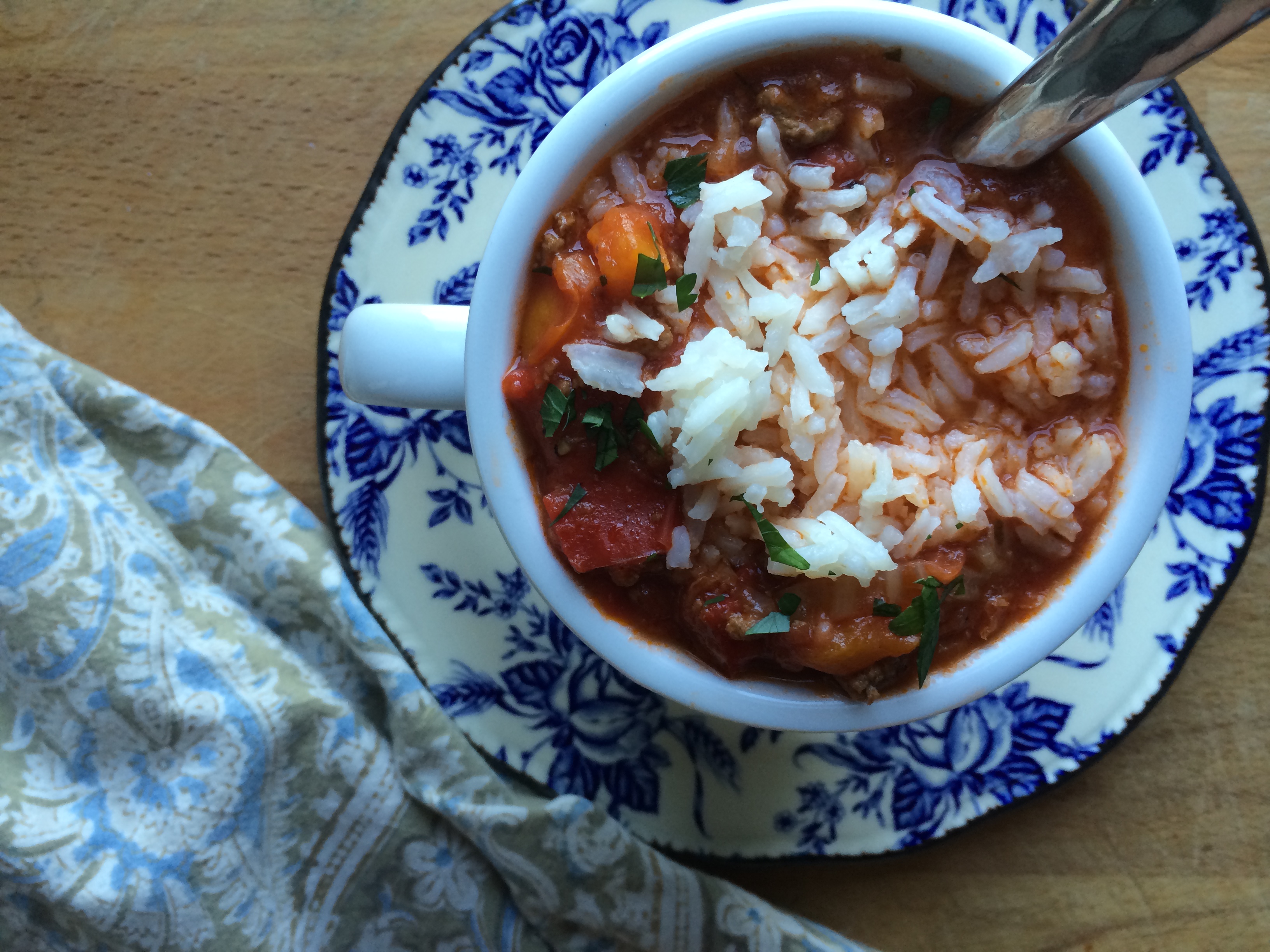 - To serve, ladle soup into a bowl and top with 1/3 cup cooked rice, fresh parsley, and sour cream (optional).
