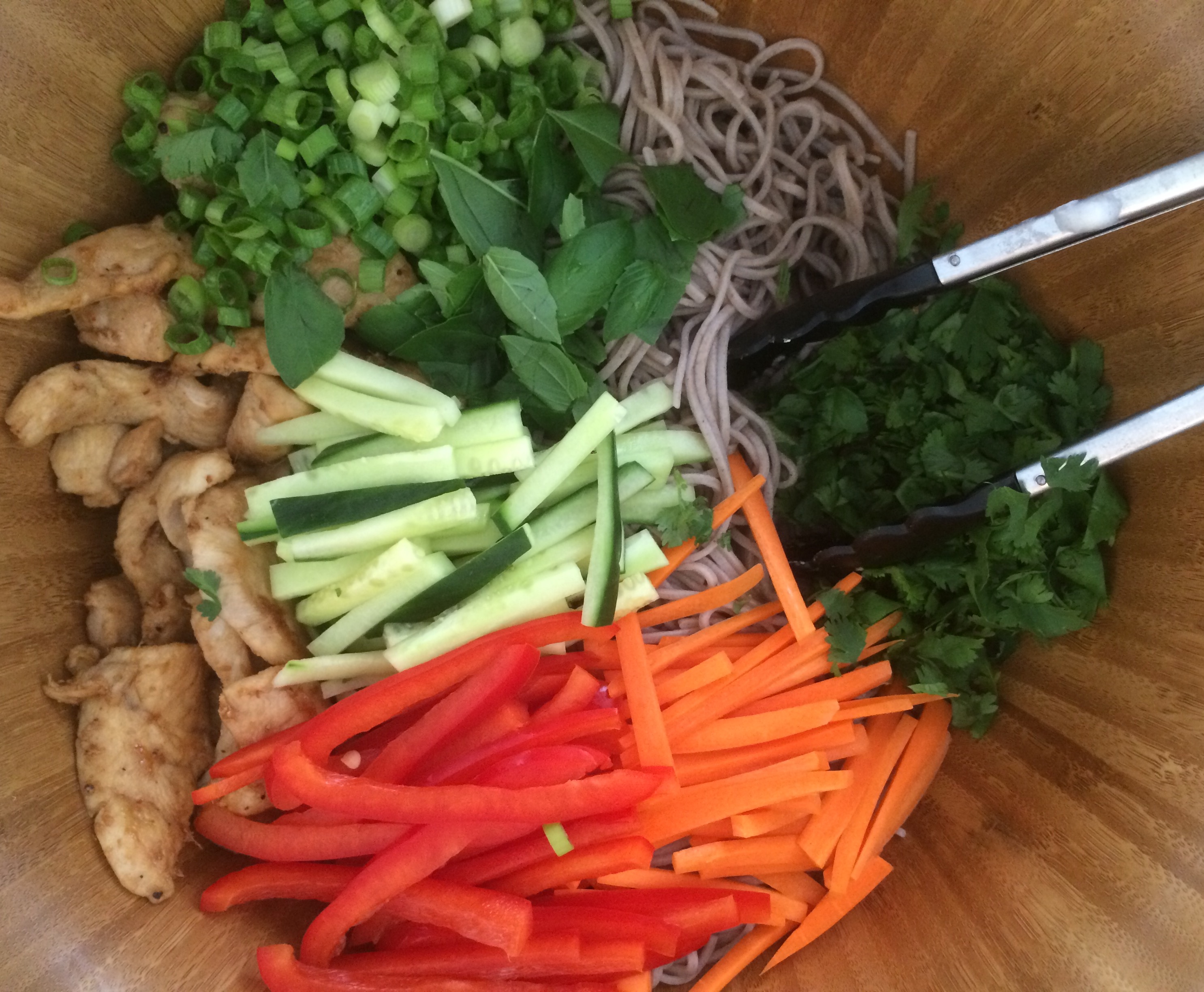 Easily modified by using any variety of vegetables you have on hand. Asparagus in your crisper drawer? Shave thin and toss it in (That was an unintentional rhyme). Bright and beautiful green beans at the farmers market? Quickly blanch along with the soba noodles during the last minute of cook time, then add ’em to the party. Looking for a meatless meal? Simply leave the chicken out. You’re the boss.