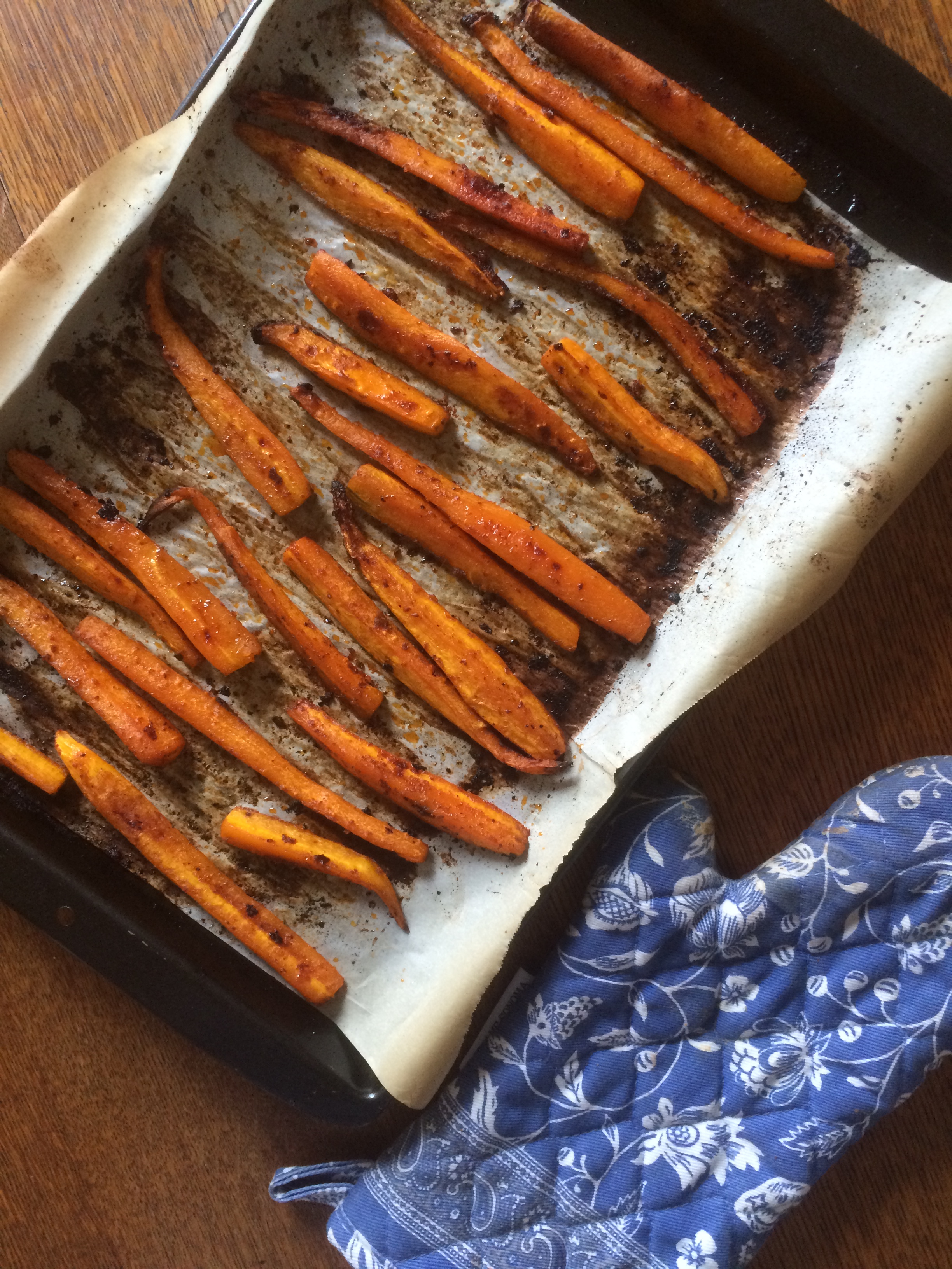 Silly food – weather comparisons aside, this IS a delicious and lovely carrot recipe. A great combination of sweet and spicy with a slight smoky flavor from the cumin. So easy, even your significant other couldn’t screw it up.